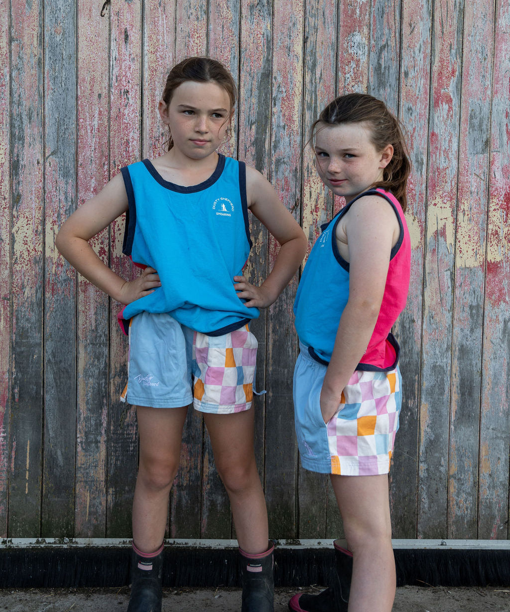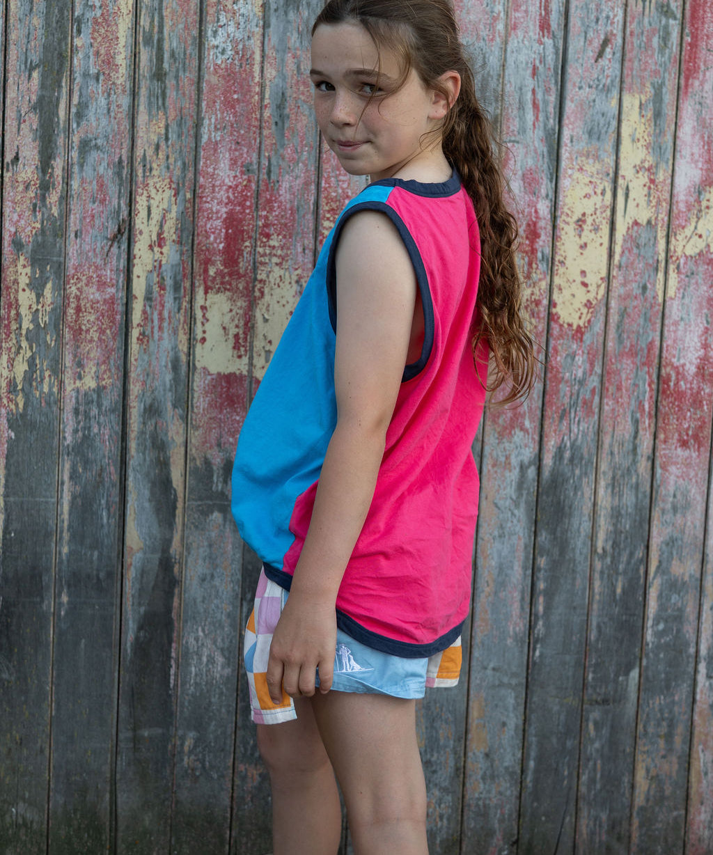 Children's Shearer's Singlet - Turquoise and Watermelon Pink