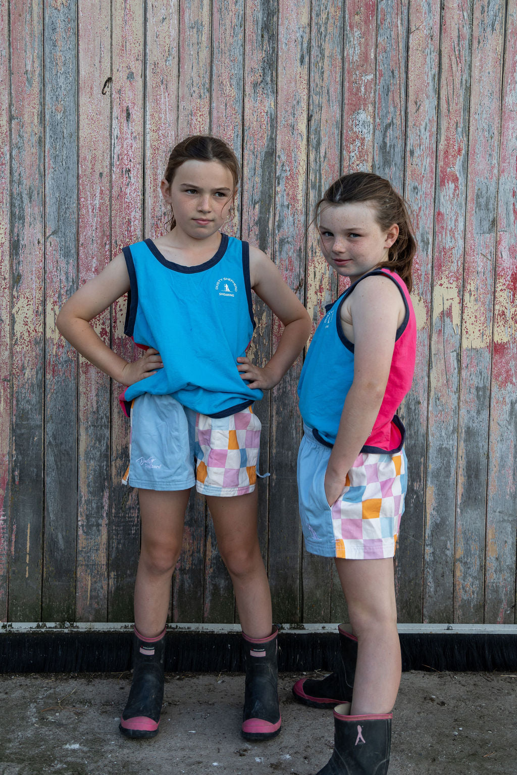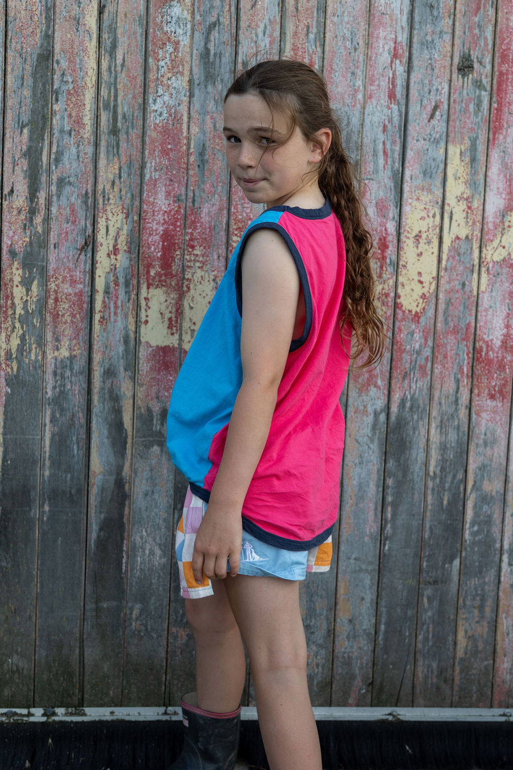 Children's Shearer's Singlet - Turquoise and Watermelon Pink