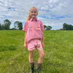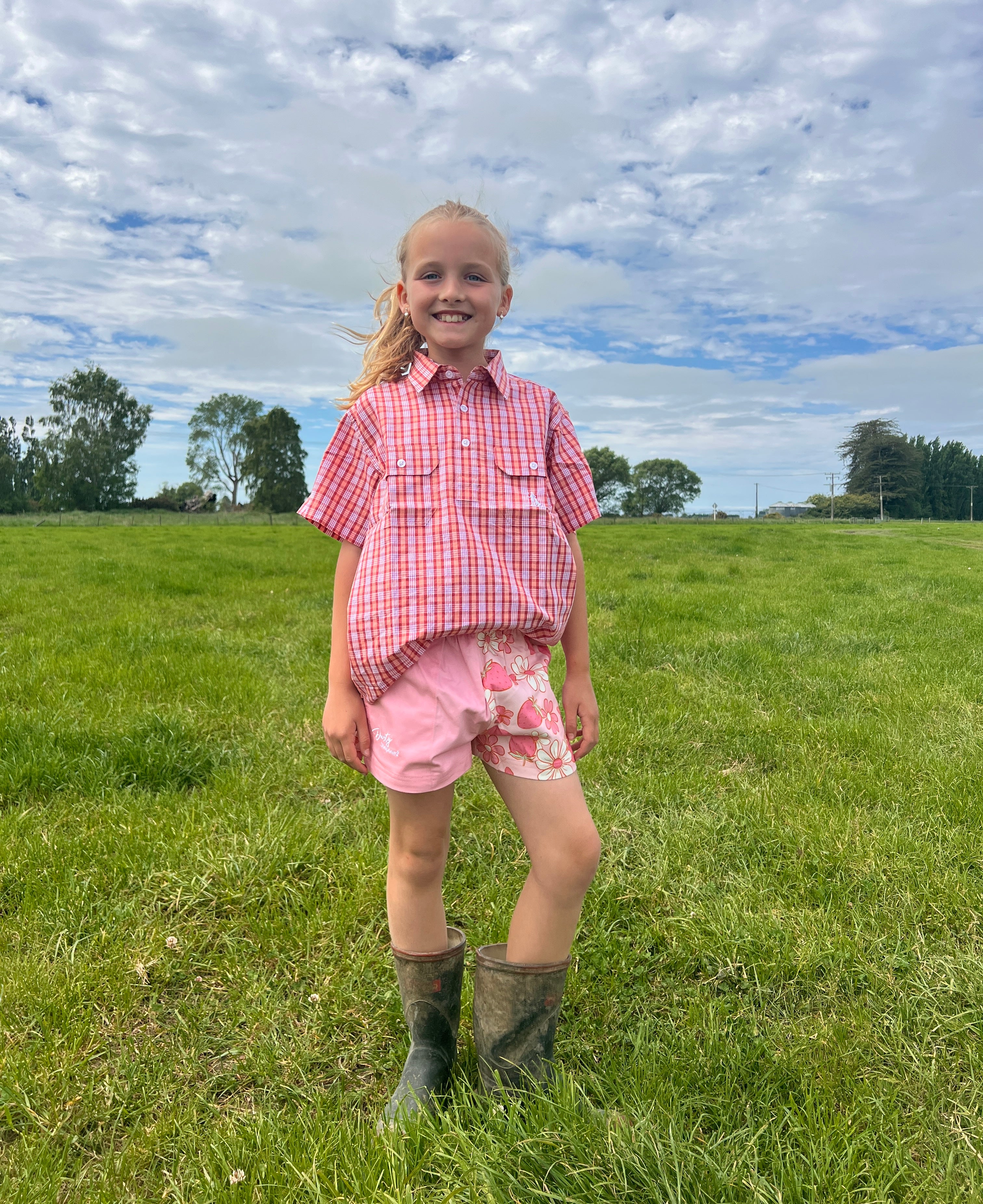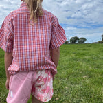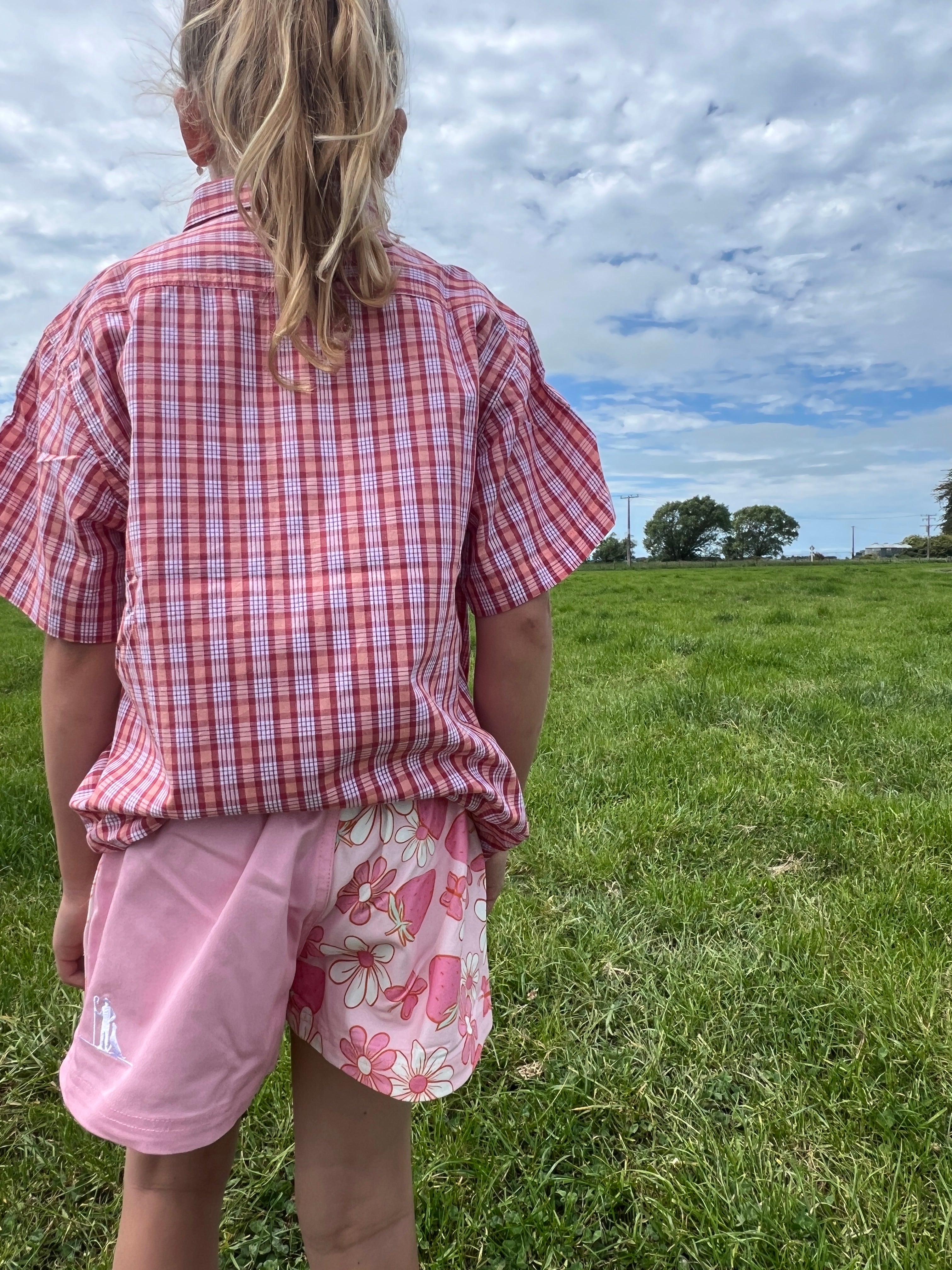 With their playful strawberry and daisy print exclusive to our brand that you won't see elsewhere and soft pink panels, these shorts bring pure joy to any outfit. Specially crafted 100% cotton fabric designed exclusively for us.