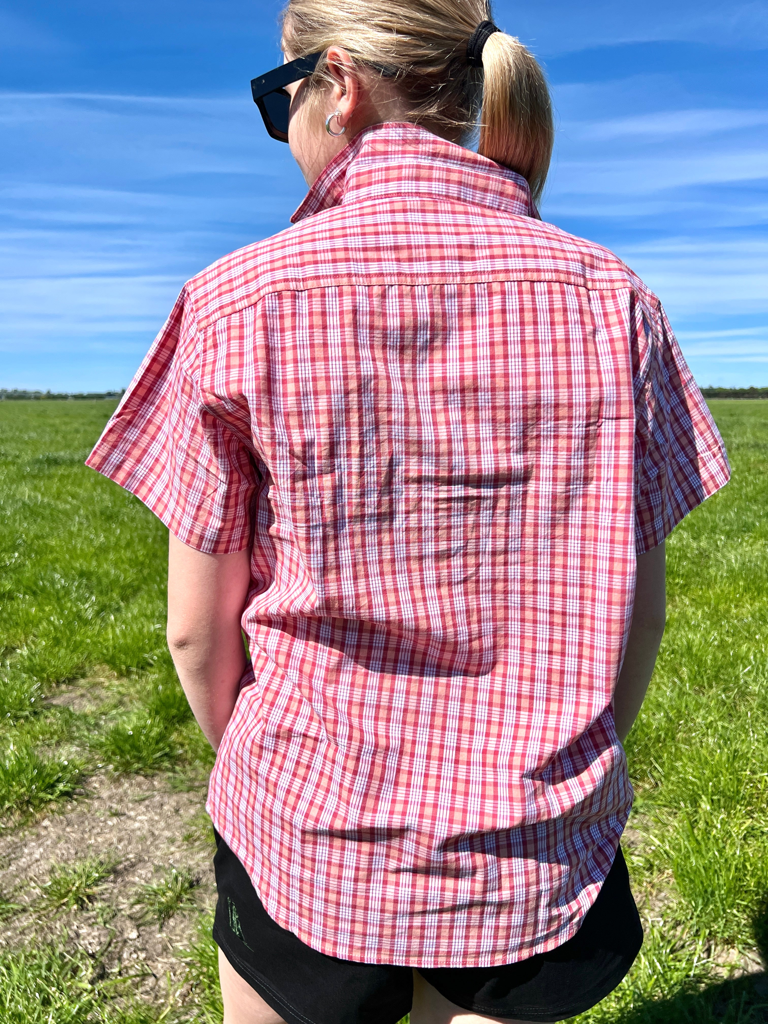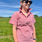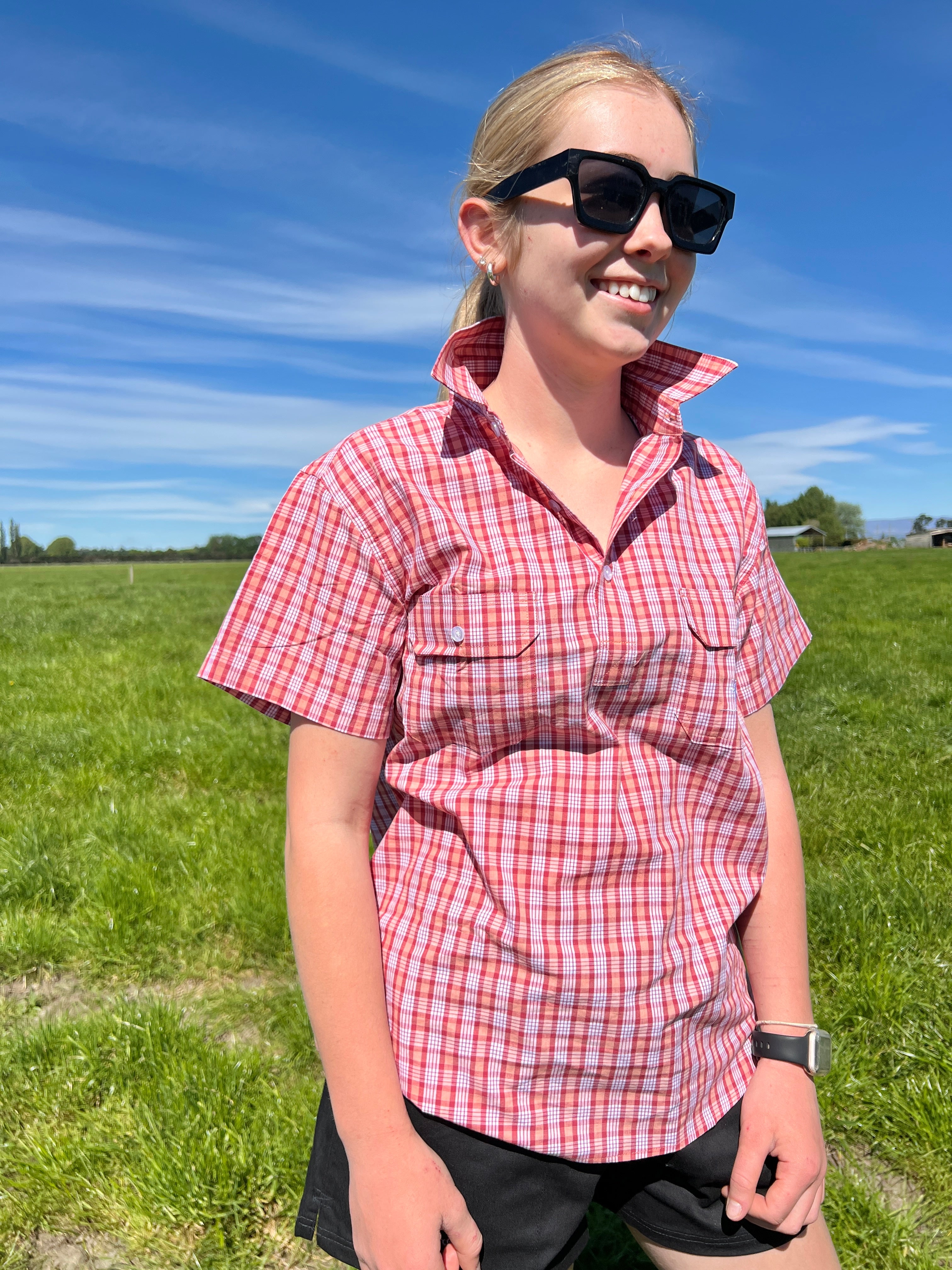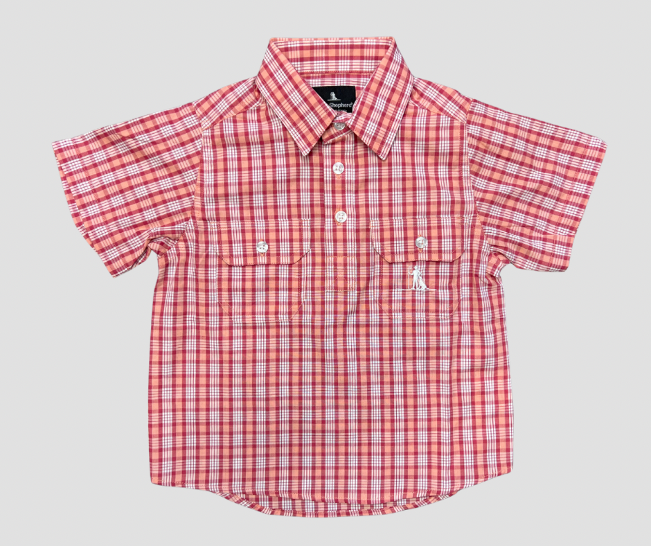 Children's Tussock Short Sleeve Shirt - Peachy Red Check