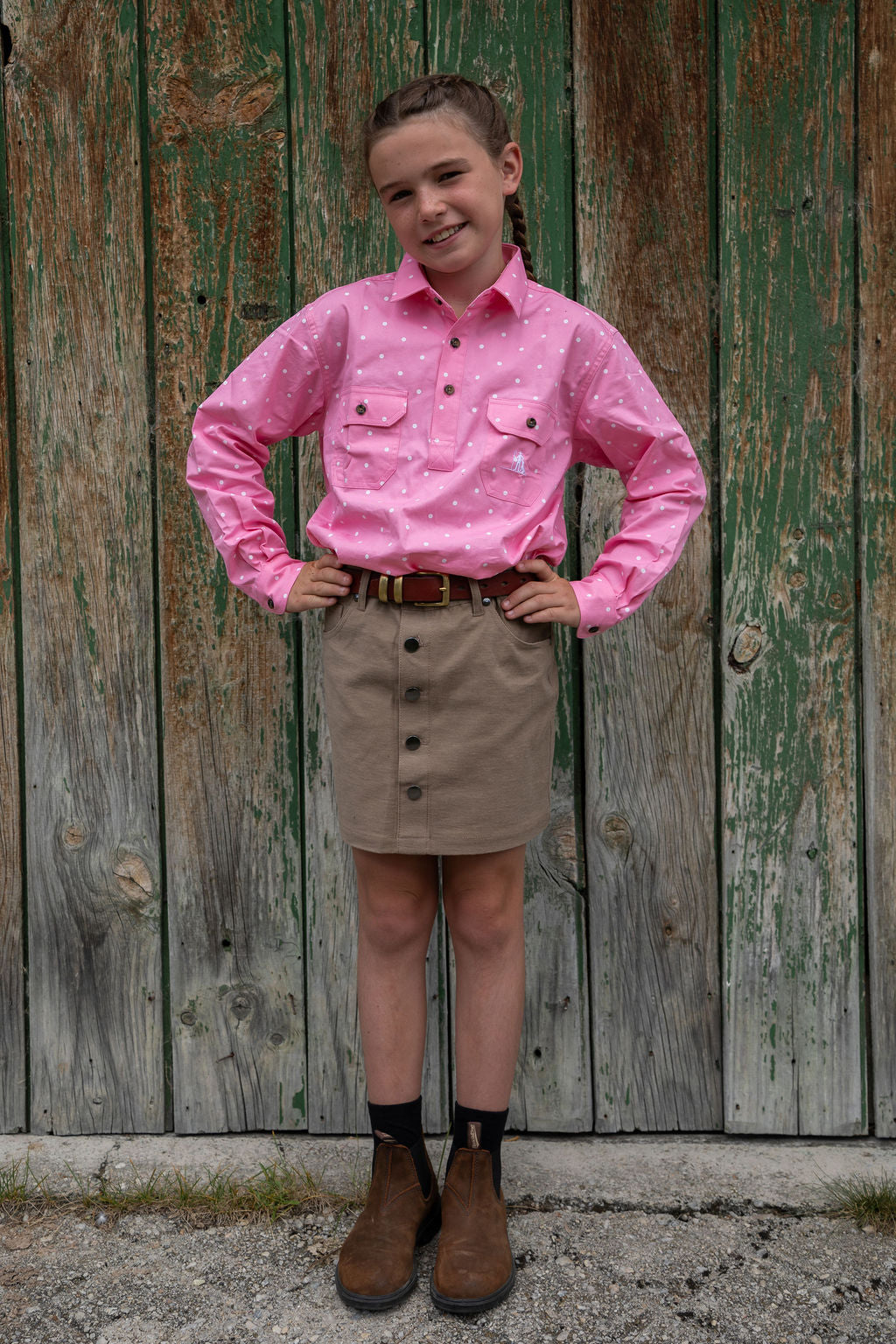 The Dusty work shirt is a relaxed loose fit shirt. An adaptable, breathable and durable shirt made to withstand whatever the children throw at them, suitable for all farming environments. Made from lightweight 100% cotton.