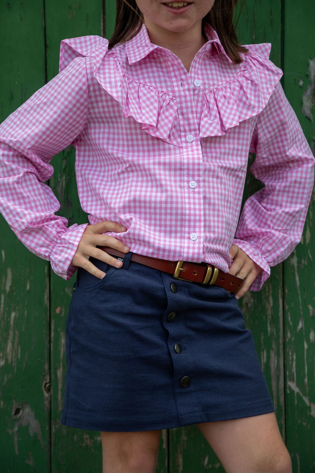 Designed to be worn season after season, it pairs beautifully with a Dusty Shirt or Rugby top, and layers perfectly with tights when the cooler months roll in. Finished with a classic dome button opening and two functional side pockets, this skirt is as sweet as it is practical.