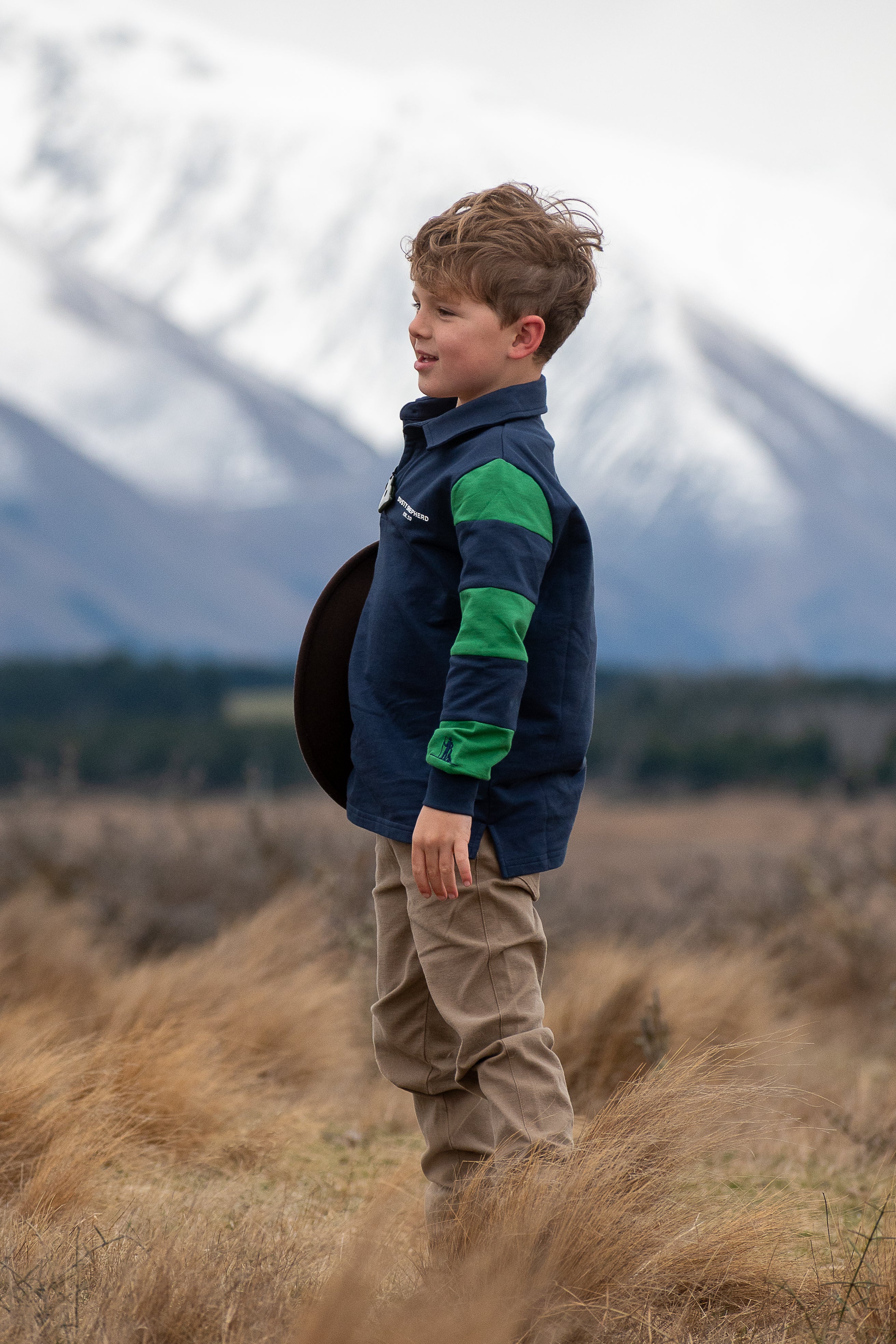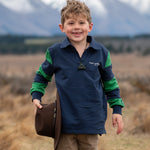With its rich navy body, deep green striped sleeves, this timeless design brings a fresh take to a rural staple. The Ridge Rugby Jumper is the perfect layer for all seasons. Made from soft, warm and breathable cotton built to last.