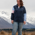 Pretty meets practical in the Ridgeview Belle rugby jumper, she combines blush pink, sky blue and deep navy panels for a look that is both refined and resilient. Constructed from premium cotton, it features a subtle pink detail on the underside of the collar. Made to make you feel comfort all year round.